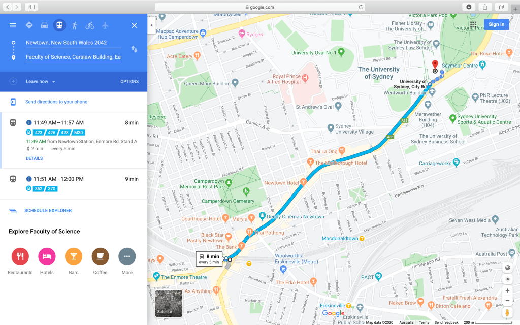 As a suburb of Sydney’s inner west, it is located approximately four kilometers south-west of the Sydney central business district.And the distance between Newtown and USYD is just 1.6 kilometers.Thus, It only takes 11 minutes for business students to the university of Sydney business school and 8 minutes to the faculty of science. In addition, literally Newtown Station is an important spot via multiple routes of transportation on city traffic map so you could probably take trains to anywhere.